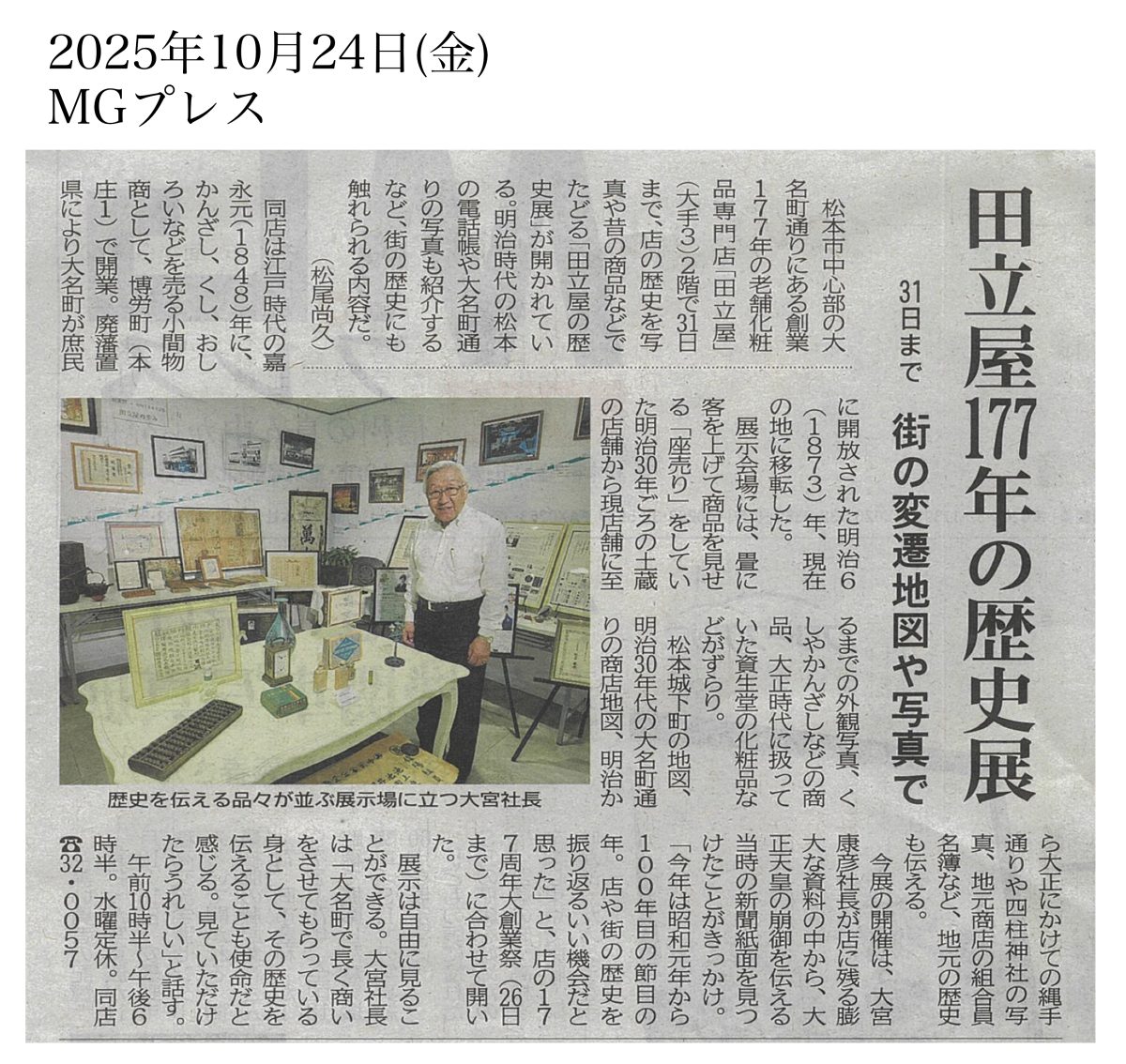 「田立屋の歴史展」 を2階特設会場にて開催いたします。