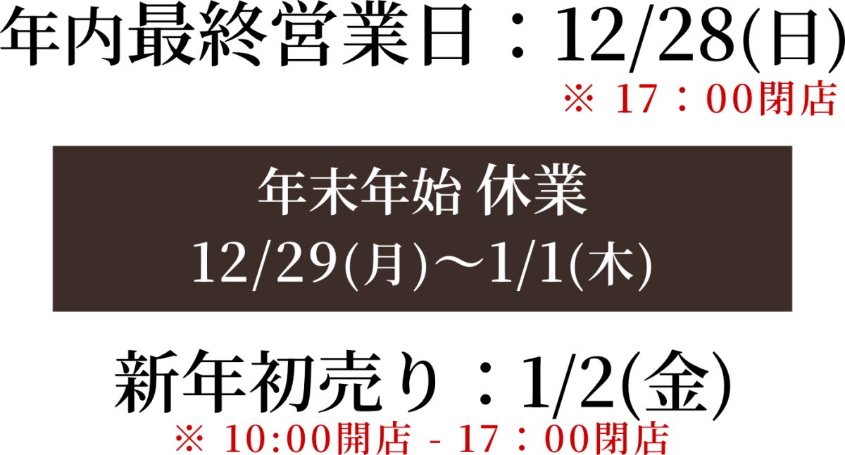 ※年内最終営業日は、通常より早い17時閉店となります。