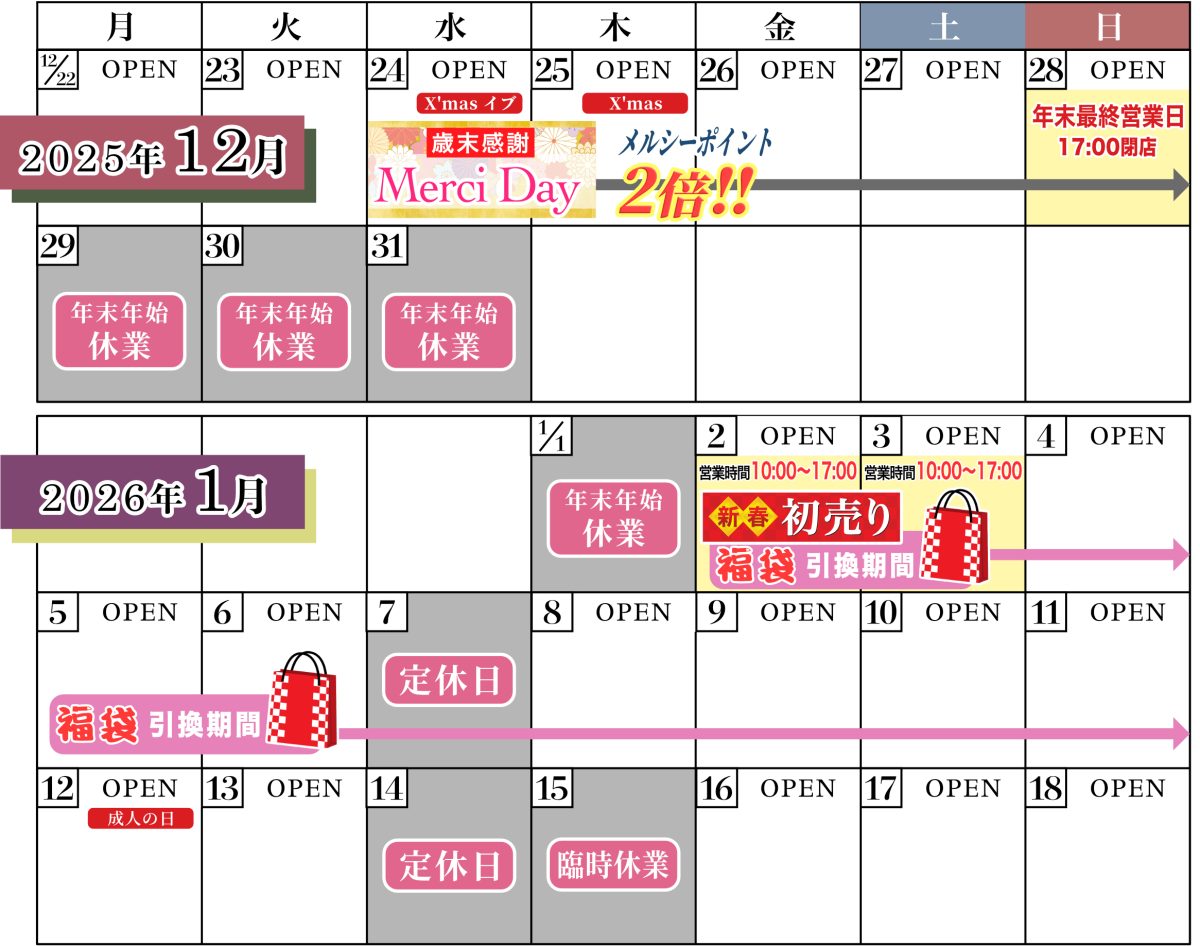 〝歳末感謝メルシーデー〟開催!! 🌟 12/25(水)〜29(日)