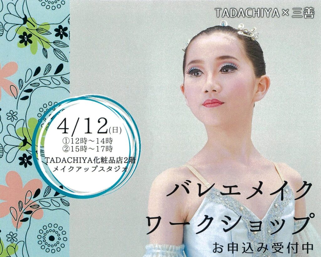 当日は、講師が三善化粧品を使用したバレエメイクのデモンストレーションを行います。